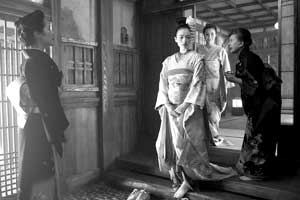 而從哥倫比亞公司最新公布的兩張劇照來看,其氣氛、色調,裝扮,似乎并無特別之處,第一眼望過去,其背景甚至像上世紀三四十年代的中國。不過章子怡、楊紫瓊和鞏俐同時出現在一個畫面里,這在目前我們已經看到的《藝伎》各種劇照、造型照中還是頭一回。(劉錚)