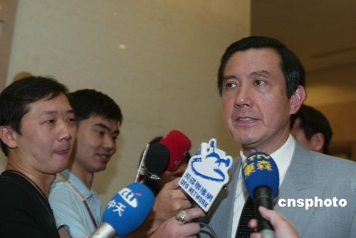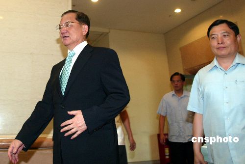 八月一日,中國(guó)國(guó)民黨主席連戰(zhàn)與新當(dāng)選的國(guó)民黨主席馬英九在臺(tái)北會(huì)面。作者:盛佳鵬