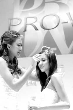 中新網(wǎng)8月2日電 北京娛樂信報(bào)消息,7月29日,在國內(nèi)某知名洗護(hù)發(fā)品牌的新品發(fā)布會(huì)上,名模謝東娜率領(lǐng)著模特春曉、戴小奕、王瀟、張?zhí)氐仍诰┭堇[了一場精彩的秀發(fā)搭配美鉆的發(fā)型秀。而受傷的臺(tái)灣名模林志玲也透過大屏幕送上問候。