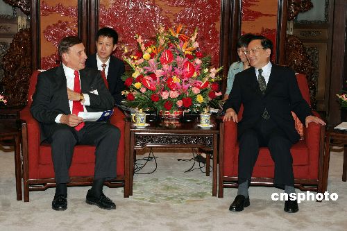 中國國務(wù)委員唐家璇八月二日在北京中南海會見代理團(tuán)長約翰·米加等美國國會眾議院美中議會交流小組代表團(tuán)成員。作者:毛建軍