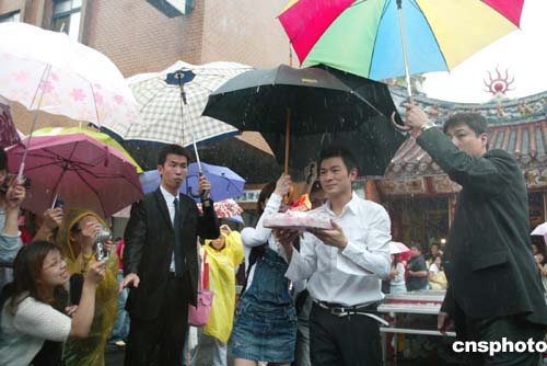 原來每次華仔到臺灣宣傳唱片時,都會遇上大風(fēng)雨,華仔說:“水為財嘛,每次我宣傳下雨,唱片都會賣得好好,這次都希望過百萬啦。只有三年前我打官司不能出唱片時,那次就是唯一一次沒下雨!