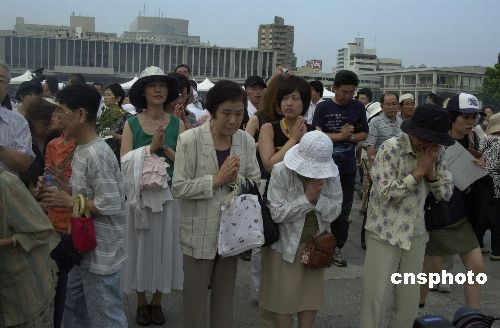 八月六日一大早,眾多日本廣島市民紛紛來(lái)到留有原子彈爆炸遺址的和平紀(jì)念公園,悼念當(dāng)年原子彈爆炸中的死難者。六十年前的這個(gè)日子,廣島遭受了人類歷史上第一枚原子彈襲擊。作者:王健
