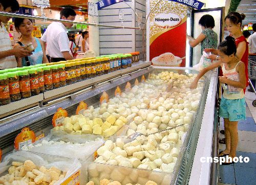 8月7日,中國食品科學(xué)技術(shù)學(xué)會(huì)專家委員會(huì)委員、天津商學(xué)院食品工程系教授張坤生近日指出,散裝速凍食品存在明顯的安全隱患。散裝銷售,無論是在銷售人員拆除大包裝散賣時(shí),還是顧客挑選過程中,都不可避免人與食品的接觸,造成細(xì)菌污染;而散裝食品與空氣接觸面積大,還會(huì)造成水分蒸發(fā)、產(chǎn)品干裂與油脂的氧化、酸敗等現(xiàn)象,同時(shí)空氣中存在的微生物、病毒等很可能污染食物,導(dǎo)致食用不安全。圖為顧客在超市選購散裝速凍食品。作者:張和平