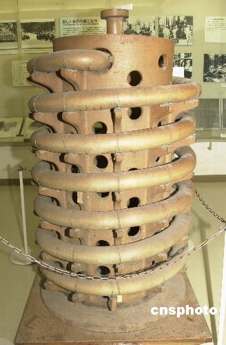 圖為島上資料館內(nèi)展示的當年用于制造芥子氣和糜爛性毒瓦斯等化武液化氣的冷卻裝置。 作者:王健