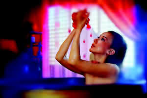 據悉,這是蕭薔飾演的女主角史紅英婚前的一次沐浴,她將在婚禮上行刺夫婿為被害的江湖俠士報仇。因此,沐浴戲要充分表現(xiàn)人物的悲壯美。整場戲拍了2個多小時,蕭薔一絲不茍,表演十分到位。