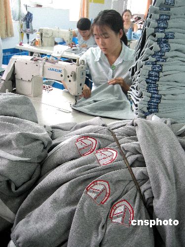 8月10日,歐盟委員會(huì)昨日表示,為避免給歐盟進(jìn)口商和零售商造成損失,歐盟將允許部分超出配額的中國(guó)產(chǎn)套衫和長(zhǎng)褲這兩類紡織品進(jìn)入歐盟市場(chǎng)。歐盟貿(mào)易委員曼德?tīng)柹谝环萋暶髦斜硎荆诮衲?月11日前啟運(yùn)的中國(guó)套衫和長(zhǎng)褲不管是否超出配額,都將被允許進(jìn)口。圖為寧波一企業(yè)正在加緊生產(chǎn)出口套衫和長(zhǎng)褲。作者:張和平