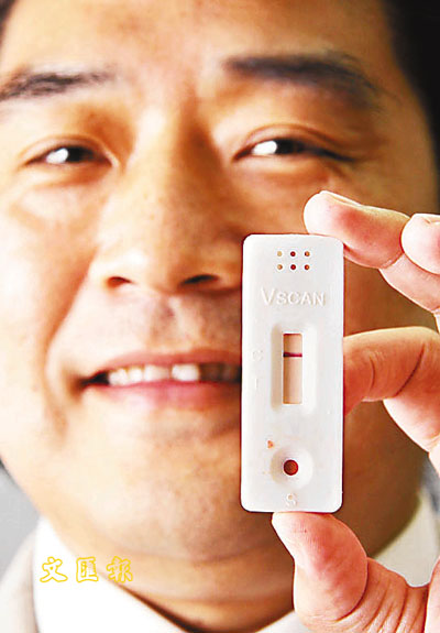 蔣凌輝說,這套測試器的優(yōu)點是快速,可自行在家中進(jìn)行測試,只需將手指的血液滴進(jìn)檢驗器上,15分鐘后會顯示結(jié)果,避免患者求診時感到尷尬或被歧視的疑難。