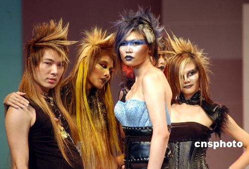 2005威娜之夏發(fā)型秀八月十二日在北京舉行,眾多發(fā)型師與模特現(xiàn)場(chǎng)向追逐時(shí)代潮流的觀眾演繹“新奇古怪”的時(shí)尚發(fā)型。作者:張宇