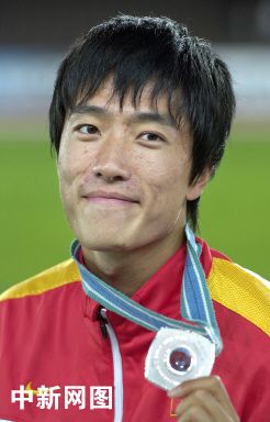 這是今晚田徑世錦賽男子男子一百一十米欄決賽后一幕,雅典奧運(yùn)會(huì)冠軍劉翔以十三秒零八摘銀,法國(guó)小將杜庫(kù)雷以百分之一秒的優(yōu)勢(shì)登基。