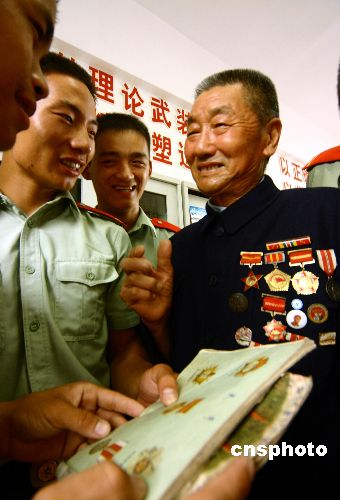 為紀(jì)念“8·15”抗戰(zhàn)勝利60周年,武警江蘇總隊(duì)所屬各部隊(duì)紛紛開(kāi)展形式多樣的紀(jì)念活動(dòng)。8月14日,江蘇泰州市支隊(duì)邀請(qǐng)江堰市溱潼鎮(zhèn)湖北口村戰(zhàn)功卓著的老英雄田春富來(lái)隊(duì)做報(bào)告,聽(tīng)老人家娓娓訴說(shuō)當(dāng)年戰(zhàn)場(chǎng)經(jīng)歷,戰(zhàn)士們被深深地吸引住了!作者:唐占軍