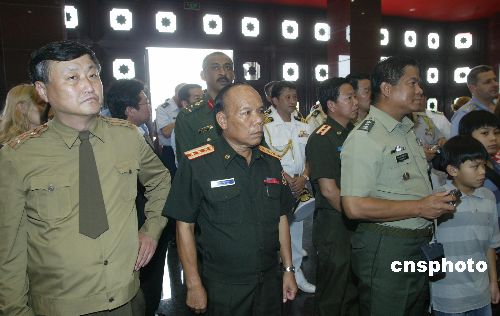 在這個中國人民抗日戰(zhàn)爭暨世界反法西斯戰(zhàn)爭勝利六十周年的日子里,坐落在盧溝橋畔宛平城內(nèi)的中國人民抗日戰(zhàn)爭紀(jì)念館莊嚴(yán)肅穆,參觀的人流穿梭不息。受中國國防部外事辦公室的邀請參觀展覽的外國駐華武官團(tuán)一行在熙熙攘攘的人群中尤為顯眼,他們仔細(xì)觀看一幅幅照片、一件件文物和一處處復(fù)原景觀,認(rèn)真聽取講解人員的英語介紹。