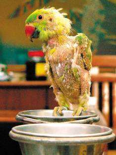 黃奕禎升上4年級(jí)后,因功課繁重,每天有寫(xiě)不完的功課,還要補(bǔ)習(xí),沒(méi)時(shí)間再陪“雅腳”玩,每天放學(xué)回家,“雅腳”總是高興的跳著、叫著,她卻只能偶爾陪它玩一下,就趕著做功課,沒(méi)多久,竟發(fā)現(xiàn)“雅腳”開(kāi)始掉毛,原以為是換毛,后來(lái)竟發(fā)現(xiàn)除了頭部,全身羽毛都快掉光了,并多次目睹“雅腳”用嘴啄著自己羽毛,一根根的拔掉,愈來(lái)愈丑。