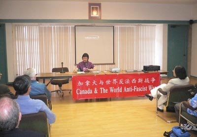圖片展期間,中國總領館邀請有關學者和卑詩省抗日戰(zhàn)爭史實維護會的負責人舉辦三場抗戰(zhàn)史實講座,主題是《加拿大與世界反法西斯戰(zhàn)爭》。中新社記者呂振亞攝