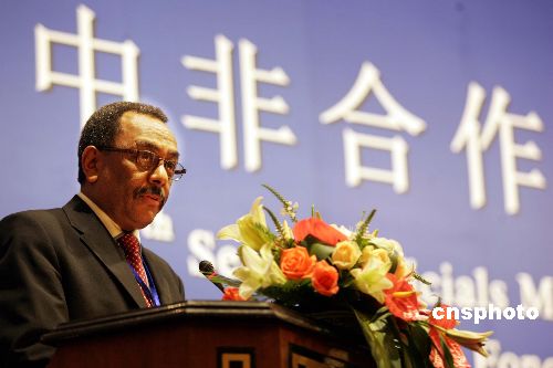 8月22日,為期兩天的中非合作論壇第四屆高官會(huì)在北京開幕,來自中國和非洲46個(gè)國家的代表、6個(gè)非洲地區(qū)組織的觀察員以及非洲駐華使節(jié)出席了開幕式。中非合作論壇是中國和非洲于2000年共同創(chuàng)立的集體對(duì)話與合作機(jī)制,已分別舉辦了兩屆部長級(jí)會(huì)議。圖為論壇共同主席國、埃塞俄比亞政府論壇特使海爾基洛斯·格塞塞在開幕式上致辭。作者:武仲林
