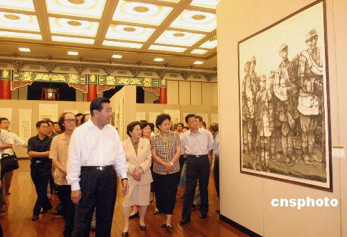 “紀念中國人民抗日戰(zhàn)爭勝利六十周年美術作品展”八月二十三日在北京全國政協禮堂開幕。全國政協主席賈慶林、全國人大常委會副委員長、民革中央主席何魯麗等出席開幕式并參觀了展覽。展覽的主題是“以史為鑒,面向未來;毋忘國恥,振興中華”,展出作品百余幅。作者:張勤