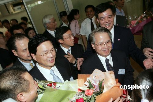 中國(guó)國(guó)民黨中央組織發(fā)展委員會(huì)主任委員廖鳳德(前左二)、臺(tái)中市黨部主任委員沐桂新(前左三)率領(lǐng)的臺(tái)中市黨部訪問(wèn)團(tuán)八月二十三日下午抵達(dá)廈門(mén),與中共廈門(mén)市委開(kāi)展互訪交流,在機(jī)場(chǎng)受到中共廈門(mén)市委副書(shū)記陳修茂等熱烈歡迎。這是兩黨政黨基層交流的“首航之旅”。作者:毛建軍