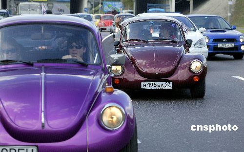 8月23日,一些大眾“甲殼蟲”汽車的愛好者開著他們收藏的甲殼蟲汽車列隊在俄羅斯首都莫斯科街頭行進,吸引了很多市民駐足觀看。作者:Ic/cnsphoto