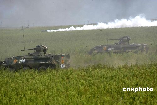 中新社濰坊八月二十五日電(記者陶社蘭)“和平使命-二00五”中俄聯(lián)合軍事演習(xí)最后一個實(shí)兵行動課目——強(qiáng)制隔離作戰(zhàn)演練,今天上午在濟(jì)南軍區(qū)濰北靶場舉行。