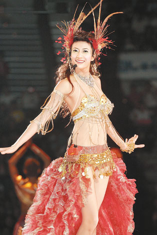 中新網(wǎng)8月27日電 據(jù)香港媒體報(bào)道,《譚詠麟歌者戀歌濃情三十年演唱會(huì)》前晚在紅館開(kāi)鑼,首場(chǎng)嘉賓有劉德華和以“火美人”造型出現(xiàn)的黃伊汶(Emme),當(dāng)Emme和阿倫(譚詠麟)跳貼身辣舞時(shí),她的舞衣卻不慎扣到阿倫衫上的飾物,互相拉扯下Emme的胸罩幾乎被扯甩走光,Emme即用手按著,她事后表示:“其實(shí)有打底,所以不擔(dān)心走光!