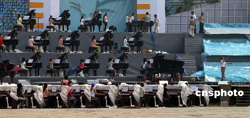圖:五里河300架鋼琴合奏挑戰(zhàn)吉尼斯世界紀(jì)錄
