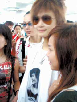 因?yàn)樵陂L(zhǎng)沙和李宇春同住一個(gè)酒店,記者看見前天晚上11點(diǎn)多還有人在李宇春住的“金牛座”門口守著,他們打算徹夜守在這里。昨天早上6點(diǎn)15分左右,記者退房途經(jīng)李宇春的“金牛座”,門口卻看不到一個(gè)人影,本以為“玉米”們都扛不住了,誰(shuí)知當(dāng)記者7點(diǎn)10分到達(dá)長(zhǎng)沙機(jī)場(chǎng)時(shí),看到十幾個(gè)穿著黃色衣服的“玉米”手捧鮮花和禮物已經(jīng)等在機(jī)場(chǎng)大廳了。