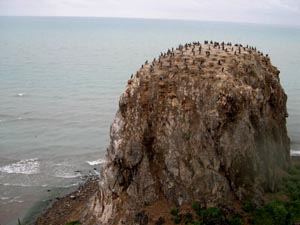 著名的青海湖鳥(niǎo)島由鸕鶿島和蛋島兩部分組成,每年春天,數(shù)以10萬(wàn)計(jì)的普通鸕鶿、斑頭雁、棕頭鷗、魚(yú)鷗、燕鷗、大天鵝等十幾種鳥(niǎo),從印度、盂加拉灣、恒河口、吉大港等地經(jīng)過(guò)數(shù)千公里的長(zhǎng)途飛翔,成群結(jié)隊(duì)從南方飛來(lái),棲居島上。它們各自選擇舒適的地方,筑巢安家,求偶產(chǎn)卵,孵育雛鳥(niǎo),鳥(niǎo)群此起彼落,把島遮蓋得嚴(yán)嚴(yán)實(shí)實(shí)。圖為鸕鶿島東側(cè)的由一片懸崖峭壁組成的“鸕鶿城堡”。