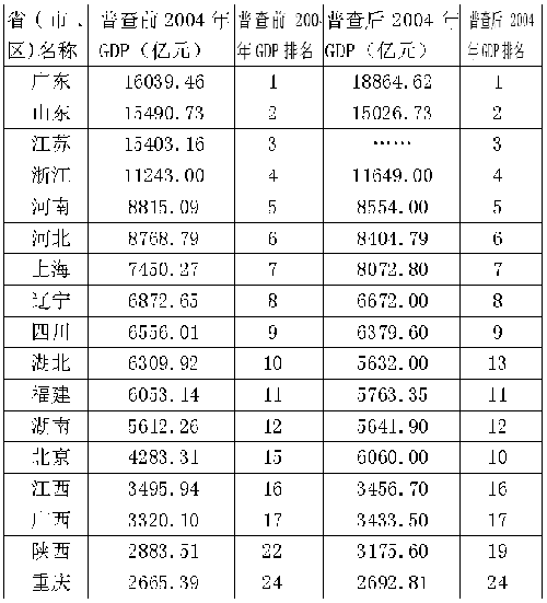 從此次經(jīng)濟(jì)普查結(jié)果來看,經(jīng)國家統(tǒng)計(jì)局抽查,數(shù)據(jù)填報(bào)的綜合差錯(cuò)率僅為4.9‰,讓這些注水?dāng)?shù)字無所遁形,于是共有12個(gè)省2004年GDP數(shù)字將下調(diào)。