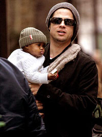 2006年,即將作爸爸的皮特,抱著茱莉的養(yǎng)女,幸福之情溢于言表。(人物雜志網(wǎng)圖)