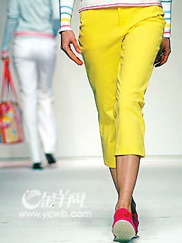 強調(diào)休閑的ESCADASPORT在本季大量使用的深藍色調(diào)中,用卷邊五分褲展現(xiàn)出一種制服誘惑,五分長度與耀眼銅扣共同書寫著都市女性的非凡個性。同樣是ESCADASPORT一款街頭風格的寬腿七分褲,褲腳被高高束起,亮粉的色彩與清爽的白色上衣最是相配,嫩黃七分褲則用粉紅便鞋帶出春天的味道。這樣的搭配,怎么穿都很青春。