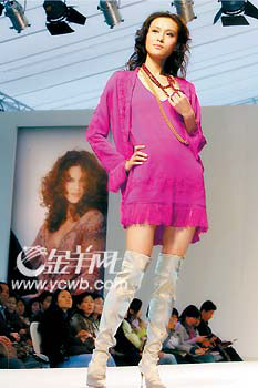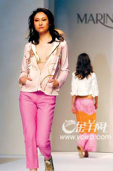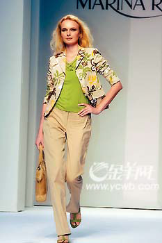幾大品牌紛紛提倡“拜金”,卻各有“金招”,其中最出位的要屬MARINA RINALDI。但見普通的白襯衫被釘上了金色鉚釘,休閑長褲的外側(cè)爬滿金光閃閃的蝴蝶與花草,長長的頸巾布滿了金色閃片,針織背心的肩頭被金屬片飾加以勾勒,就連風衣前襟都散落著大大小小的金屬閃片,令人拍案叫絕。