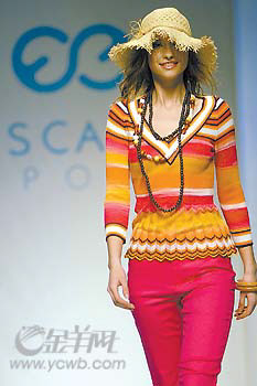 色彩繽紛的Kookai一向善玩多彩條紋,每季都會變幻不同花樣。今季可見更多橫紋與斜紋、縱紋的交錯,深V的領口設計彰顯女人味?v條紋與單色相拼接的小背心、蓬蓬裙,看上去休閑又俏皮,針織條紋背心則被用來與格仔襯衫搭配,帶出一股中性美。與之類似是ESCADASPORT,雖然用經(jīng)典黑白配來演繹水手條紋,卻將不同紋理分割羅列于同一件衣服上,甚至不惜在前襟開滿百合花的T恤背面玩起縱橫交錯的游戲,陰柔和硬朗完美交接,顯得自由奔放。