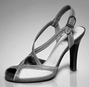 對晚宴鞋來說,今年春夏的時尚風(fēng)不知是喜是悲。悲的是,由于舞蹈鞋和楔跟鞋的沖擊,向來派對女主角的晚宴鞋,頗有冷落之意;喜的是,晚宴鞋在這個夏天開始走上街頭,與各類褲裝搭配,另打拼出一片天地。就款式而言,本季晚宴鞋沒有太多新意,無非是更加強(qiáng)調(diào)華麗,以金色、彩色系帶和丁字細(xì)高跟涼鞋為主,鑲有彩色水晶,充分發(fā)揮張揚之能事。不過,本季晚宴鞋最突出的款式是,腳踝處的搭襻細(xì)跟涼鞋,絕對比高跟涼拖更為搶眼。