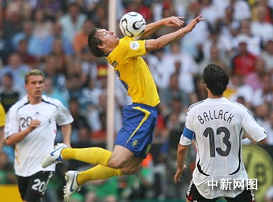 德國隊仿佛模仿二戰(zhàn)期間對瑞典的“閃電戰(zhàn)”,一開場就利用主場之利大舉進攻,瑞典隊則加強全場緊逼,試圖遏制德國人的進攻。在進攻上,德國隊注意層次的推進,在中路的突破和小配合非常默契。比賽剛剛進行到第4分鐘,德國隊就在瑞典隊禁區(qū)前形成混戰(zhàn),克洛斯拿球后將球分給巴拉克,巴拉克將球回傳禁區(qū),克洛斯帶球突入后射門,門將出擊倒地撲救將球擋出,波爾多斯基在禁區(qū)內(nèi)截到皮球一腳抽射,皮球被盧西奇用頭頂了一下后還是飛入瑞典隊大門,德國隊1比0取得了一個夢幻開局。