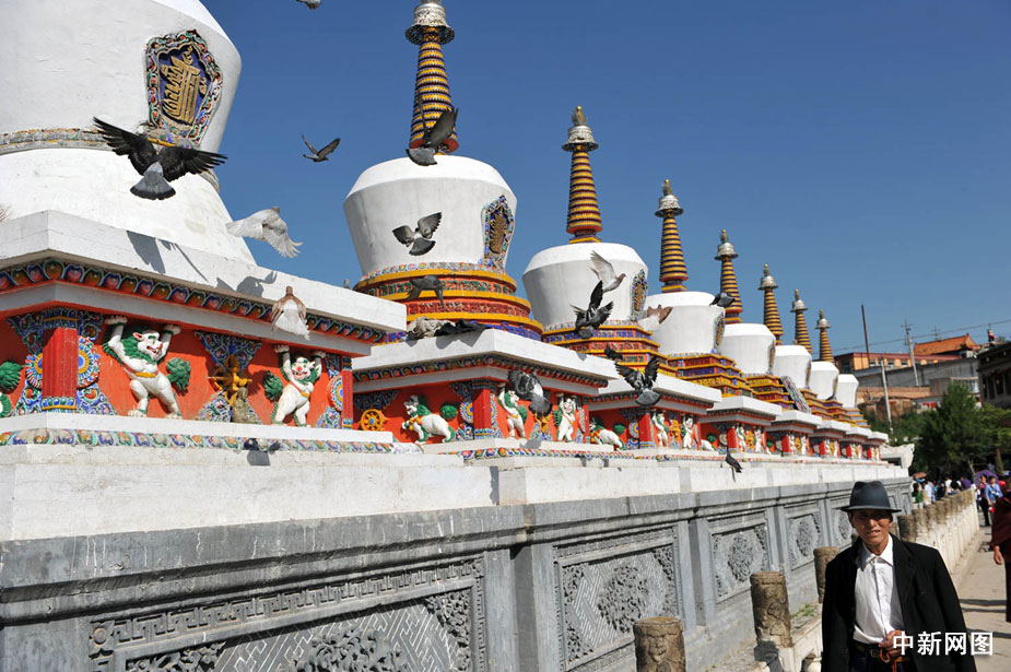 圖為塔爾寺門前的“如來(lái)八塔”。中新網(wǎng)記者 金碩 攝