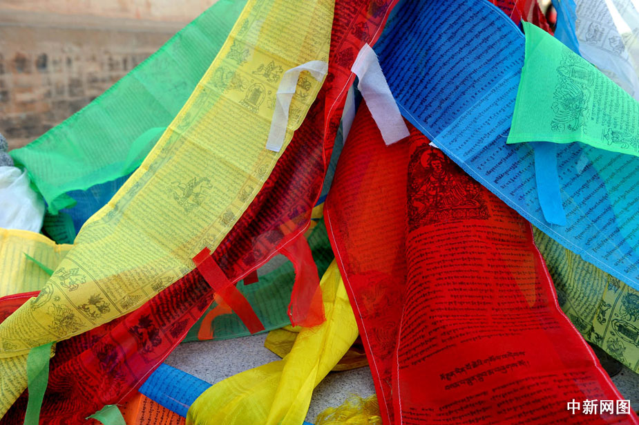 圖為寫滿經(jīng)文的彩帶。中新網(wǎng)記者 金碩 攝