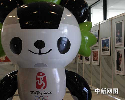 北京奧運火炬?zhèn)鬟f圖片展上的福娃晶晶