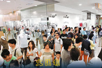 時(shí)代廣場(chǎng)推廣及廣告部經(jīng)理馬惟樂(lè)稱(chēng),一連3日的小黃金周,令該商場(chǎng)人山人海,人流明顯增加,相信生意額較去年同期上升8%至10%;人流則上升8%至10%。他續(xù)稱(chēng),北京奧運(yùn)熱潮影響,也帶動(dòng)售賣(mài)運(yùn)動(dòng)服飾的商鋪大旺。