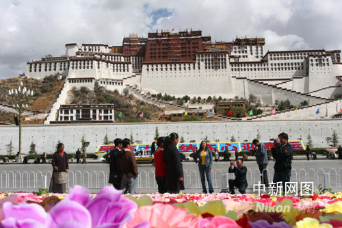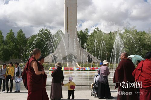 平日只在夜間開(kāi)放的布達(dá)拉宮廣場(chǎng)音樂(lè)噴泉,今日破例在白天開(kāi)放。廣場(chǎng)上用鮮花搭建的“民族大團(tuán)結(jié)、齊心迎奧運(yùn)”等三組奧運(yùn)主題景觀,把不是節(jié)日勝似節(jié)日的廣場(chǎng)裝點(diǎn)得花團(tuán)錦蔟。廣場(chǎng)上西藏和平解放紀(jì)念碑前,幾位紅衣喇嘛正在接受媒體采訪。日前他們?cè)鴮iT舉辦過(guò)“祈愿世界和平、祝福北京奧運(yùn)”主題法會(huì)。年紀(jì)稍長(zhǎng)的一位喇嘛說(shuō)。“北京奧運(yùn)會(huì)圣火今天成功在珠峰點(diǎn)燃,激發(fā)了中華民族的自豪感。聽(tīng)說(shuō)珠峰傳遞結(jié)束后,圣火火種將在拉薩與西藏境內(nèi)傳遞的主火種會(huì)合。這又是一次民族團(tuán)結(jié)的象征,必將彰顯示中華民族傳統(tǒng)的‘和合’理念!