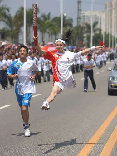 美女火炬手空中一躍 成福州圣火傳遞一大亮點(diǎn)