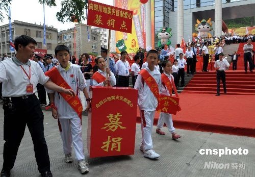5月15日,奧運圣火在江西井岡山傳遞,中學生在圣火所經(jīng)過的路線上布置募捐箱向四川災區(qū)募集善款,沿途民眾紛紛響應奉獻愛心。當日,奧運圣火傳遞提出“傳遞圣火奉獻愛心”的口號。 中新社發(fā) 廖攀 攝