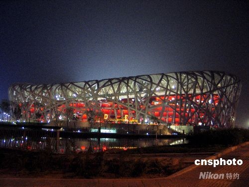 2008年5月22日,“好運(yùn)北京2008搜狐中國(guó)田徑公開賽”在國(guó)家體育場(chǎng)開賽,首日比賽持續(xù)到當(dāng)晚23:30結(jié)束。夜幕下的“鳥巢”和“水立方”在璀璨的燈光中更加壯麗紛呈,美輪美奐。 中新社發(fā) 張侃 攝