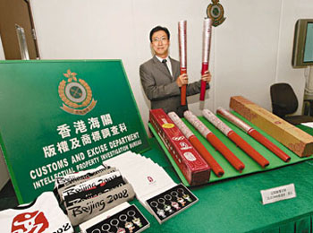 趙育雄重申,海關(guān)一向致力與奧委會(huì)合作,打擊一切侵權(quán)活動(dòng)。根據(jù)紀(jì)錄,2005年至今,海關(guān)一共破獲16宗涉及“2008北京奧運(yùn)會(huì)”商品的侵權(quán)案,檢獲大批侵權(quán)鎖匙扣、手表、襟章、貼紙及衣服等,共值3.2萬(wàn)元。至于偽冒的“祥云火炬”則是首次檢獲。
