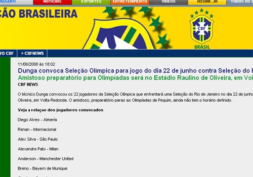 巴西足協(xié)網(wǎng)站截圖