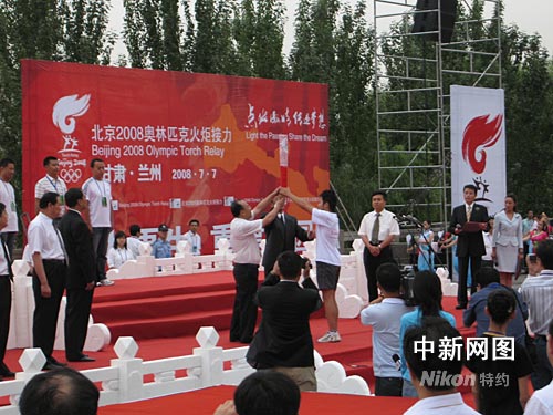 中新網(wǎng)蘭州6月30日電 (劉薛梅) 奧運(yùn)圣火7月7日將抵達(dá)蘭州市,為確保圣火在蘭州順利圓滿傳遞,6月30日,這里舉辦了奧運(yùn)火炬接力演練活動(dòng)。