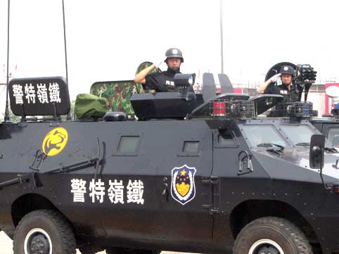 出警儀式上,遼寧省公安廳、沈陽軍區(qū)、遼寧省武警總隊等單位進行了力量集結拉動展示。1326名隊員齊聲高呼著口號,迅速開始登車。寬闊的跑道上警燈閃爍,精神飽滿的公安特警方隊,整齊威武的武警持槍方隊,軍容嚴整的人民解放軍方隊以及由特種裝備車、輕型裝甲車、運兵車、照明車、防化車、特種偵察車、炊事車、特戰(zhàn)車、防彈車、突擊沖鋒車、水炮車、宿營運兵車、裝甲運兵車、防核生化車等119臺車輛組成的共26支方隊依次通過主席臺,經過市區(qū)主要街路,駛往沈陽奧體中心。