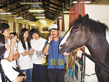在參觀馬房時,30多名中學(xué)生都好奇地東張西望,大部分都是第一次跟馬匹如此近距離地親密接觸,女生都忍不住鼓起勇氣摸摸馬頭馬頸,“它好溫馴啊!”張琪琪一邊撫摸馬匹,一邊開心地說。