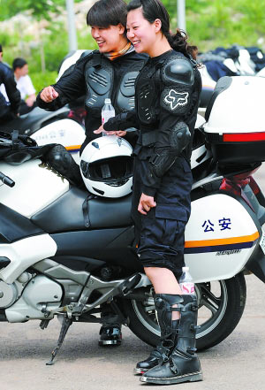 就是在這種情況下,從五月至今,魔鬼訓(xùn)練終于有了收獲,“警花”們駕駛技能提高程度之快,令男隊員們也刮目相看。如今,她們一樣能夠熟練地駕駛摩托車,編隊行進,自如穿樁,應(yīng)對路面各種復(fù)雜狀況。女警們告訴記者,現(xiàn)在她們已經(jīng)差不多達到了“人車合一”的境界。男女隊在“緊急制動”科目的一次挑戰(zhàn)賽中,居然是女隊“完勝”——估計前提是男隊員謙讓了一點。