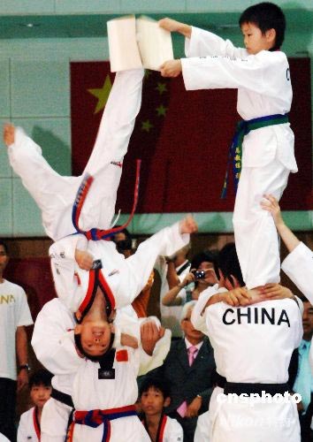 圖:中國跆拳道小運(yùn)動(dòng)員精彩獻(xiàn)技