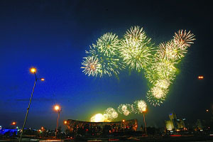 組圖:“鳥巢”試放煙花現(xiàn)場:“五環(huán)”盛放夜空