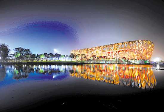 昨晚,北京奧運會主會場“鳥巢”夜景照明系統(tǒng)舉行竣工后的正式彩排。據(jù)介紹,鳥巢夜景照明由五個部分組成,其中主體照明以傳統(tǒng)文化元素“中國紅”為主色。鳥巢夜景照明系統(tǒng)可演示不同的動態(tài)效果場景,包括金色、銀色、紅色及紅色動態(tài)表演。 新華社記者 羅曉光 攝